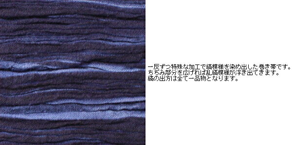 商品説明 一反ずつ特殊な加工で縞模様を染め出した巻き帯です。