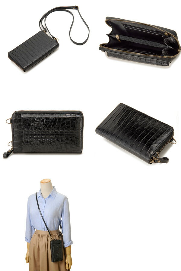 ヒマラヤ クロコダイル スマホ ポーチ ポシェット ヘンローン カードホルダー付き 斜め掛け ミニ ショルダーバッグ スマホ入れ スマホケース スマホショルダー レザー 本革 鰐革 母の日 ギフト プレゼント 敬老の日 4FA (06001589r)