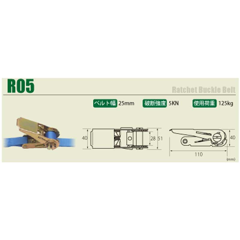 ベルト荷締機 ラッシングベルト ラチェットバックル式 R05 アイタイプ E010-030 ベルト幅25mm 固定1m 調整3m 梱包 輸送資材 テザック アミ 代引不可