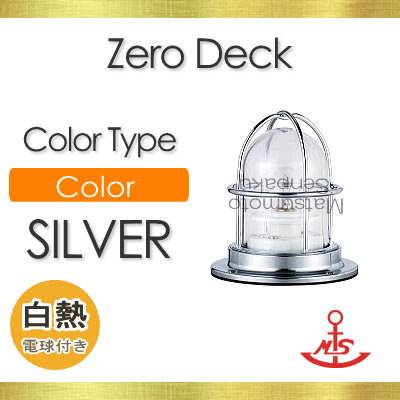 商 品 詳 細仕様●白熱ランプ装着モデル 型 式 ZR−DK−S 品 名 ゼロデッキシルバー サイズ 幅125φ 高135mm 本体材質 真鍮・青銅鋳物 (メッキ仕上) グローブ 透明樹脂 装着ランプ 白熱ミニクリプトン電球 KR100v22w 透明 ソケット口金 E17 本体重量 0.96kg POINTゼロデッキには100v22w透明の白熱ランプ(ミニクリプトン電球)が装着されております。