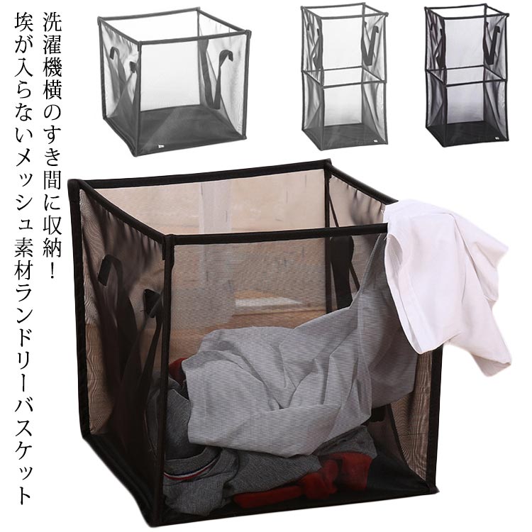 洗濯機横のすき間に収納!埃が入らないメッシュ素材ランドリーバスケット出し入れしやすい広い間口なので洗濯物も入れやすいです。