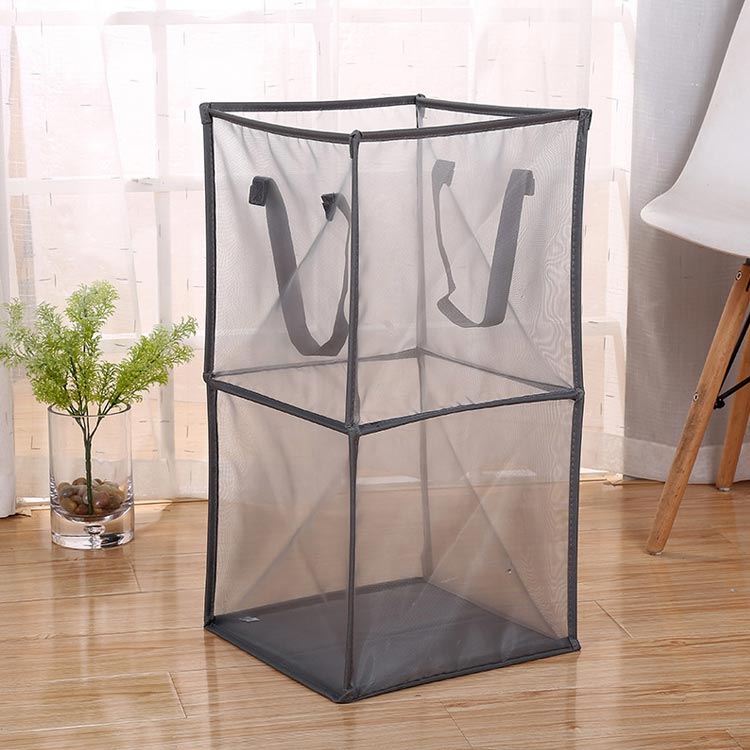【送料無料】ランドリーバスケット 折りたたみ スリム 2段 メッシュ 北欧 大容量 ランドリー 洗濯かご 衣類 収納 袋 隙間収納 バスケット 蒸れにくい シンプル おしゃれ おもちゃ箱 収納ボックス コンパクト 収納 無地 インテリア 取っ手付き