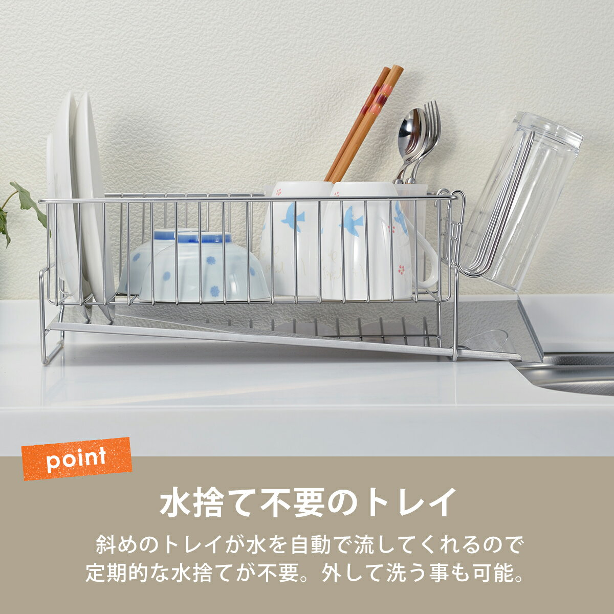 ポイント10倍!斜めに流れる1段水切りラック 水切りかご 右置き用 左置き用 燕三条 日本製 洗い物 ステンレス製 箸立て ビーワーススタイル be worth style ギフト・のし可