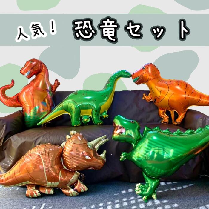 大きい恐竜 5つセット バルーン 子ども 大人気 誕生日 男の子 女の子 イベント 催し お祝い プレゼント バースデー 人気 サプライズ 1歳 2歳 3歳 こども園 小学生 マニア オススメ アルミバルーン 風船 ダイナソー ティラノサウルス 1000円ポッキリ ポイント消化